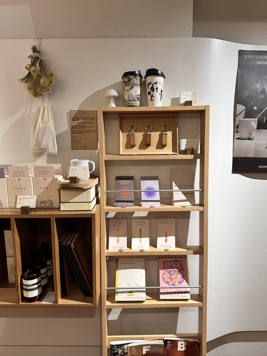 폰트 커피 만의 원두, 컵, 굿즈 등을 판매하고 있었어요