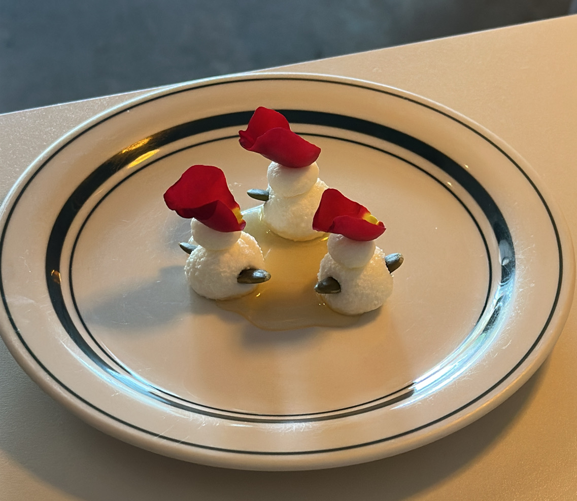 식사 후 서비스로 주신 리코타 치즈 눈사람