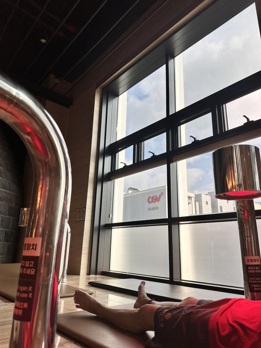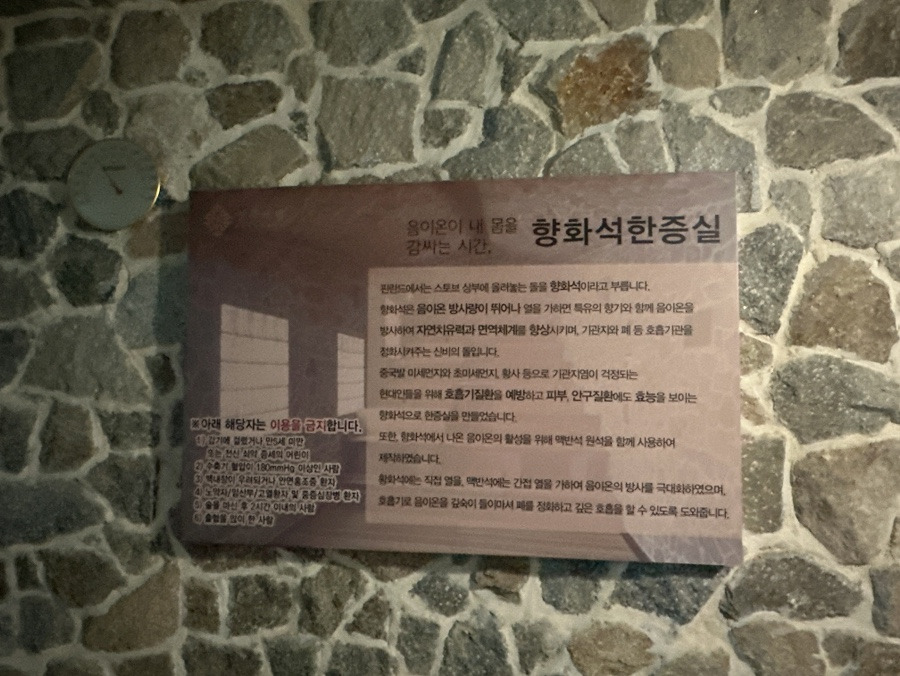 여성스파 4층으로 가서 찜질복으로 갈이 입고5층 한증막으로 갔어요