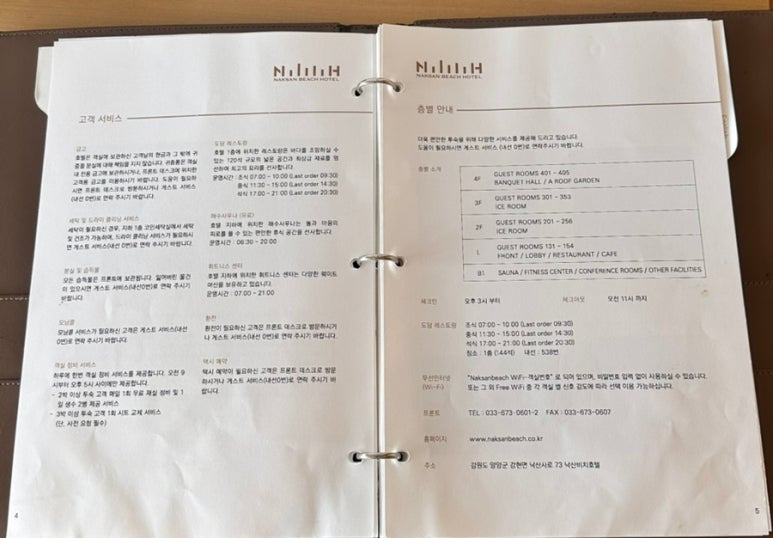 체크인 시 받은 팸플릿