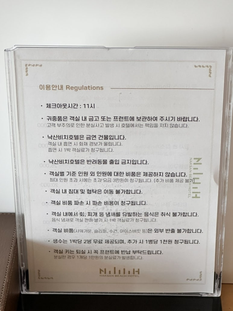 호텔 내에 있는 안내문